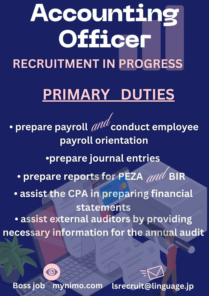 💘💞 “𝐃𝐨𝐧’𝐭 𝐦𝐢𝐬𝐬 𝐨𝐮𝐭 — 𝐡𝐞𝐫𝐞’𝐬 𝐲𝐨𝐮𝐫 𝐜𝐡𝐚𝐧𝐜𝐞!” 💞💘 Qualifications: •A degree in BS Accountancy, Finance or Business Administration •At least 1 year or more of relevant experience •Experience and knowledge about PEZA is an advantage #AccountingJobs #AccountingOfficer #NowHiring #JobOpening